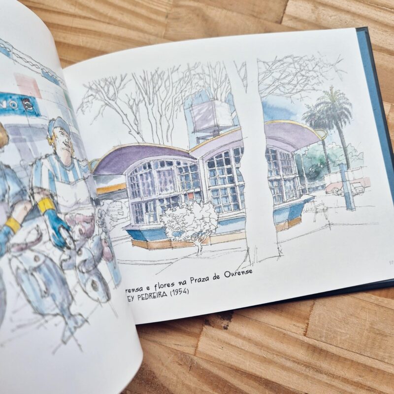 Eduardo Baamonde hace un recorrido en acuarelas por A Coruña registrando sus calles, sus plazas, sus edificios, sus gentes, sus costumbres y su vocación marítima. Junto a algunos de los ejemplos de patrimonio más emblemáticos, conviven otros rincones menos conocidos pero que ayudan a configurar una imagen tan rigurosa como popular de esta ciudad.