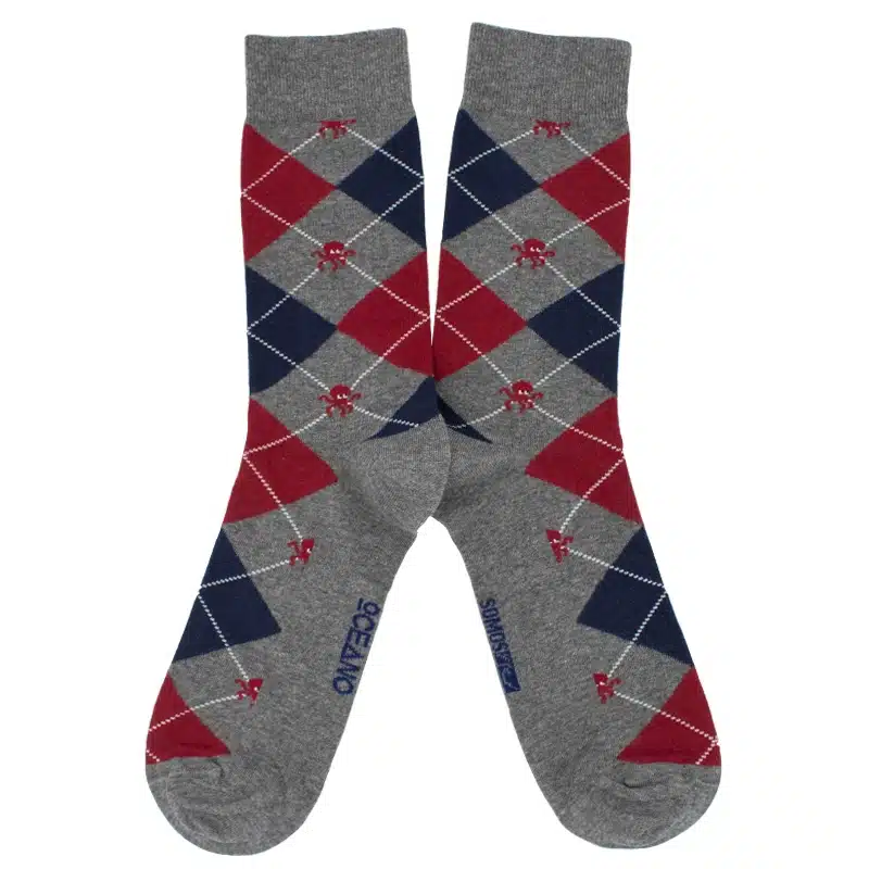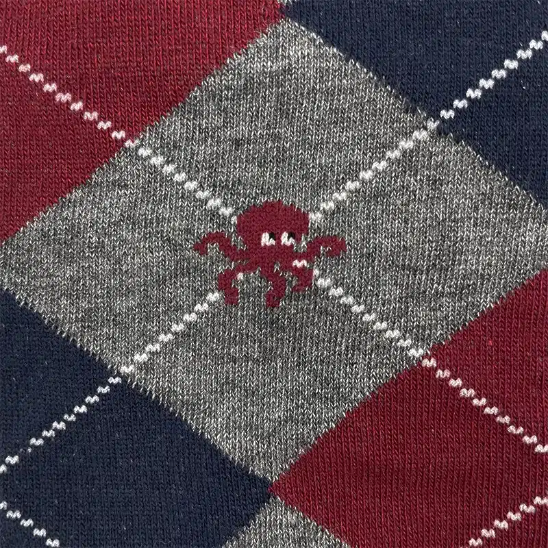 Estos calcetines de rombos aportan un toque clásico que nunca pasa de moda, pero con una sorpresa que los hace únicos. Entre los rombos tradicionales, se cuelan pequeños pulpos, que le dan a este diseño un aire divertido y diferente, fiel al estilo de SomosOcéano.