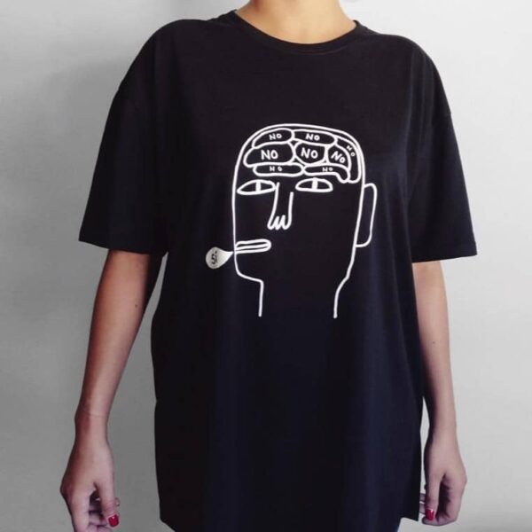 Esta camiseta ilustrada de Leandro Barea es un pequeño ejercicio de sinceridad gráfica: una cabeza llena de “noes”… y un tímido “sí” que se escapa cuando menos te lo esperas. Porque sí, la vida muchas veces funciona exactamente así.