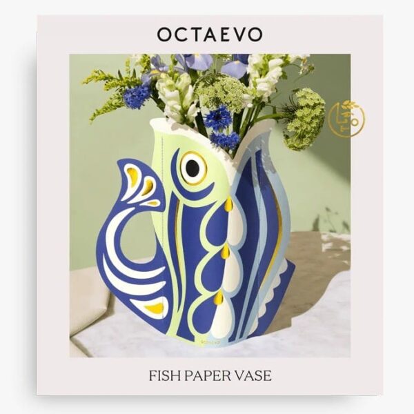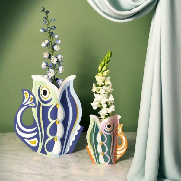 Sumérgete en el vibrante mundo submarino del Mediterráneo con este florero artesanal, con un pez vibrante y hecho con papel impermeable especial.