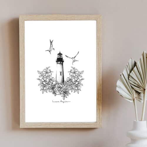 La delicadeza hecha dibujo. Los trazos de Laura Agustí en esta lámina Lighthouse son tan precisos y cuidados que crean un estilo único y especial.