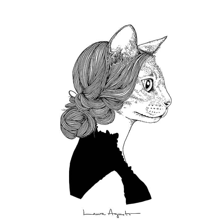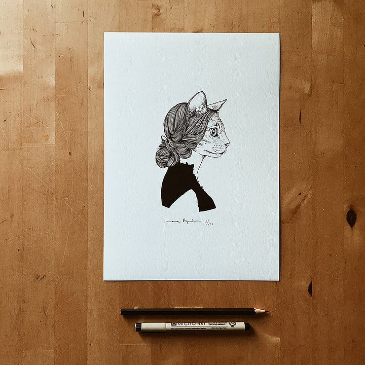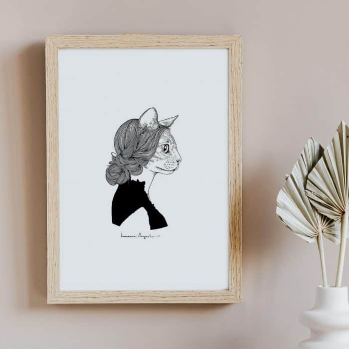 La delicadeza hecha dibujo. Los trazos de Laura Agustí son tan precisos y cuidados que crean un estilo único. Esta Lámina Miss Catgraben es una muestra de ello.