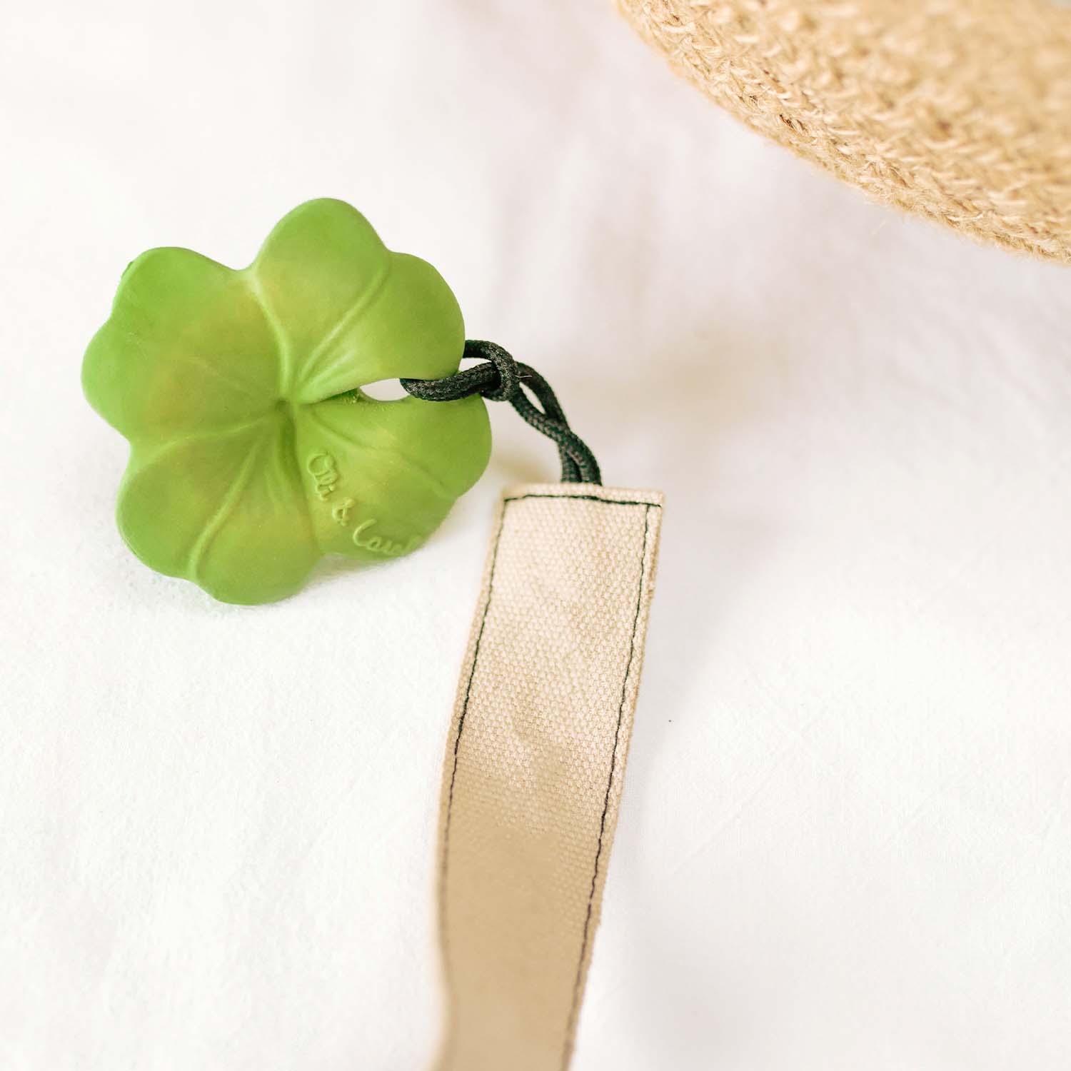 Eli the Clover es el nuevo concepto de mordedor para bebés de Oli&Carol. Este diseño ligero con forma ergonómica es perfecto para que los puedan sujetar y morder fácilmente. Este mordedor para bebés incluye una serie de texturas que ayudan a calmar las encías de los más pequeños. ¡Fácil de colgar de un chupetero y llevar a todas partes!