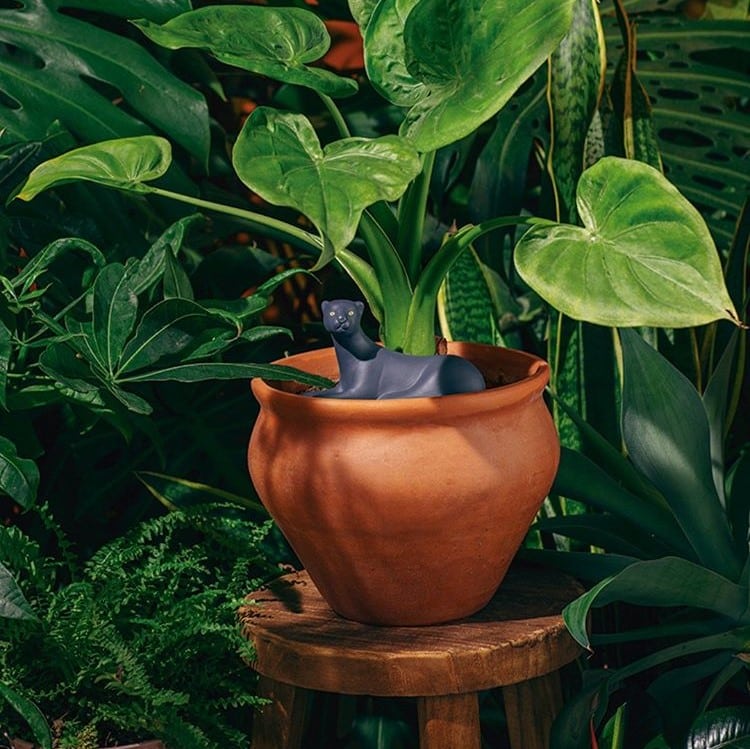 ¡Nunca dejes tus plantas sin agua otra vez! Este sistema de riego automático con forma de pantera riega tus plantas durante un par de días a través de su material poroso.