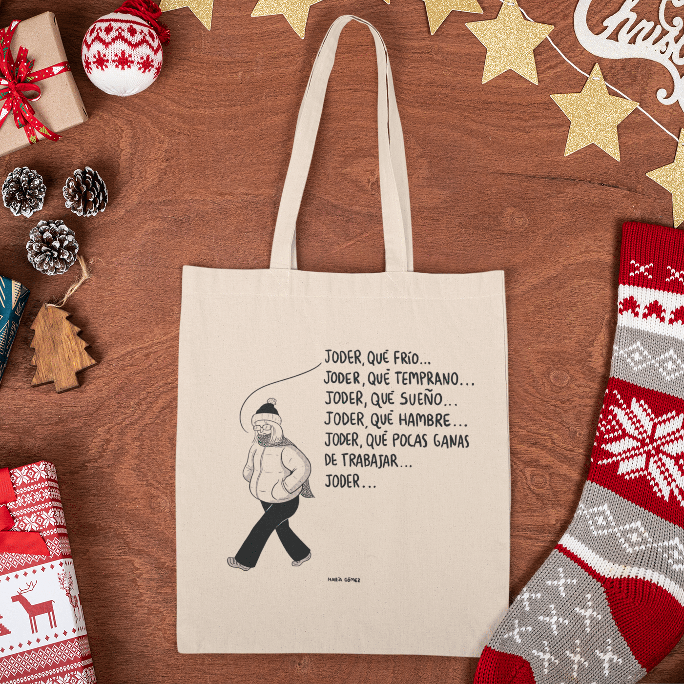 Las ilustraciones de María Gómez son divertidas, reales y están cargadas de ironía. Si te gusta dormir mucho, quedar con tus amigas para arreglar el mundo, pegarte una buena sobremesa o tomarte un buen vino al acabar un día duro, estas son tus ilustraciones. Y ahora puedes llevarlas en tu tote bag favorita, como esta llamada Frío.