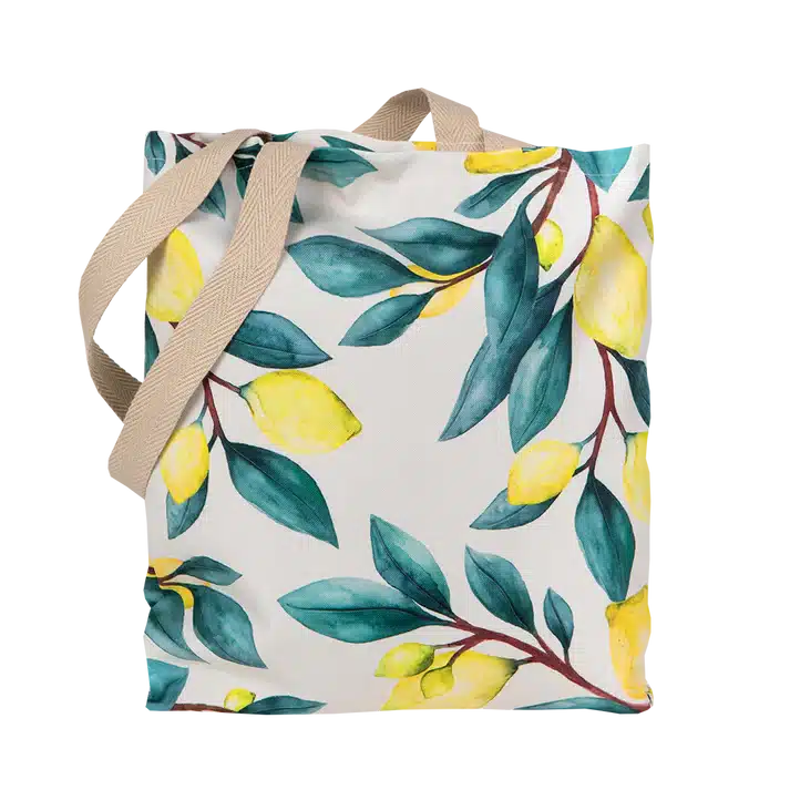 Preciosa tote bag con diseño de limones. Perfecta para lucirla con cualquier look y darle esa nota de color que le falta. Robusta, cómoda y bonita, ¿qué más se puede pedir?